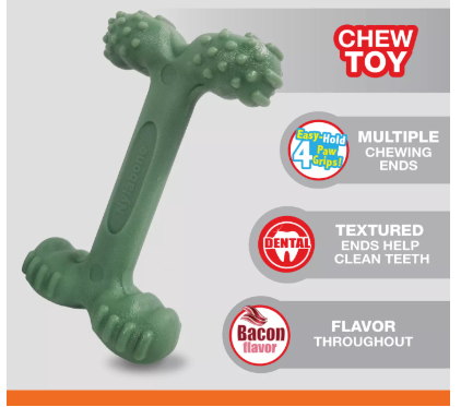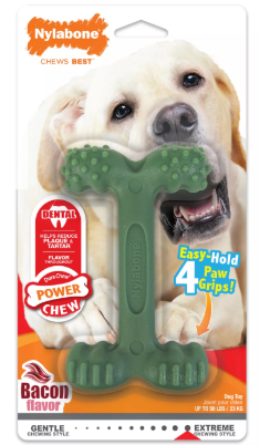 The Nylabone Power Chew Easy-Hold Dog Chew Toy is designed for extreme chewers, with 4 paw grips that allow for easy and comfortable chewing from any angle. Made from tough, durable nylon, it stands up to aggressive chewing while helping to reduce plaque and tartar buildup with its multiple dental textures. This giant-sized chew toy is perfect for dogs up to 50 pounds, promoting healthy chewing habits and keeping your dog entertained for hours. The bacon flavor adds extra satisfaction, making it a great solution for curbing destructive chewing habits.